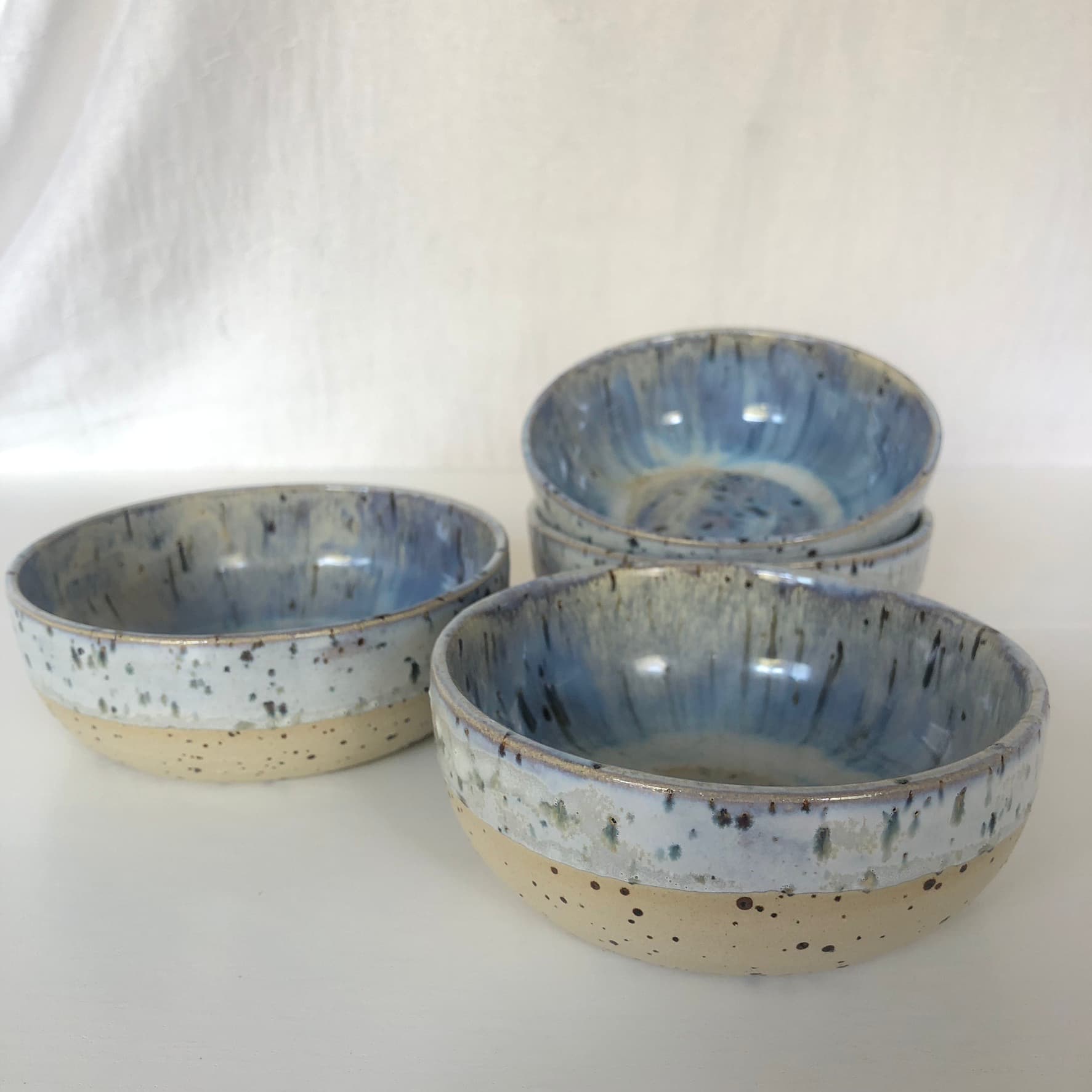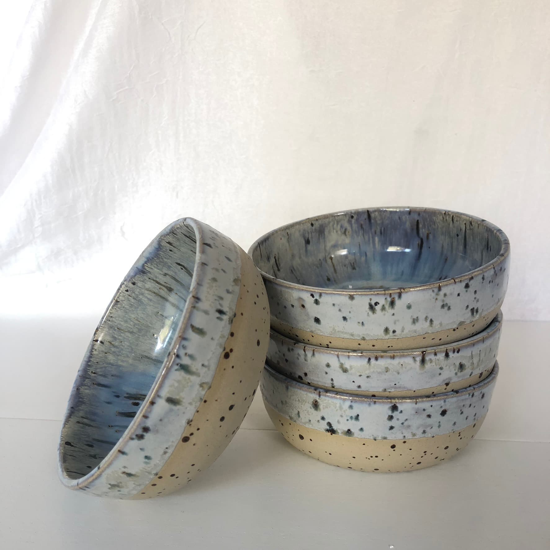 Ciotolina in grès puntinato, tornita e smaltata a mano.